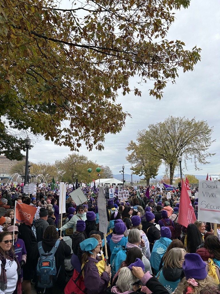 À l’occasion de la 6e action de la Marche mondiale des femmes 2025, sous le thème « Encore en marche pour transformer le monde », qui a eu lieu le 18 octobre dernier, Anne-Marie Bellerose, présidente de la Fédération des intervenantes en petite enfance du Québec (FIPEQ-CSQ) était à Québec pour participer à cette grande mobilisation, en solidarité avec les femmes du Québec et du monde entier.