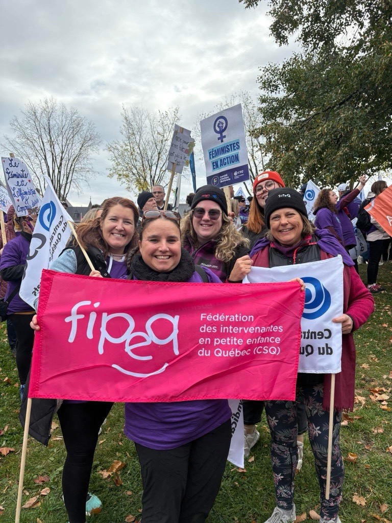 Ces intervenantes contribuent au développement des enfants et à la construction d’une société plus équitable, car elles incarnent concrètement les valeurs féministes d’égalité, de justice sociale et de solidarité. En ayant participé à cette marche, la FIPEQ-CSQ réaffirme son engagement envers la lutte pour les droits des femmes et la reconnaissance pleine et entière de leur rôle dans la société.